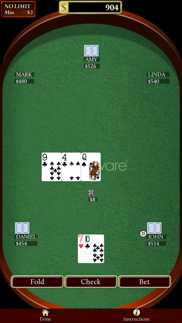 Astraware Casino includes instructions on how to play each of the games, so you can enjoy them without playing with real money. There is also a bank where you can get an overdraft if your luck is out, or stash your cash if you win big!